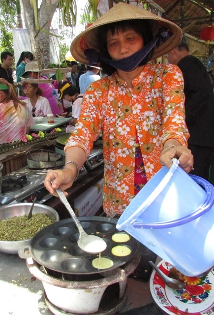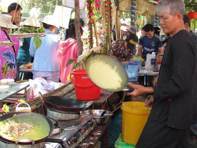 Ngoài đơn vị chủ nhà TP Cần Thơ và 12 tỉnh đồng bằng sông Cửu Long còn có nhiều địa phương khác tham gia. Ảnh: Trình diễn đổ bánh xèo Nam Bộ