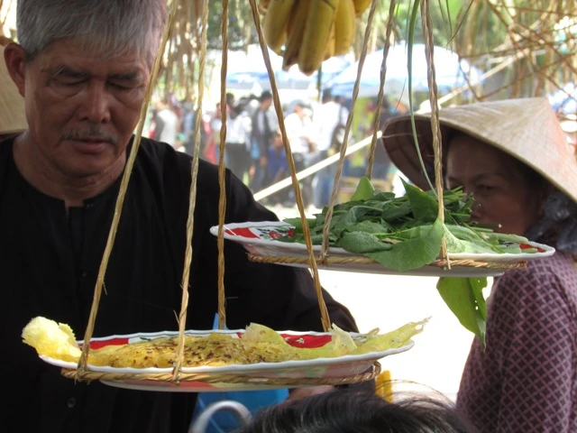 Theo đó đã giới thiệu và trưng bày 100 bánh dân gian các loại, 66 đặc sản, 20 loại thức uống dân gian, 20 loại chè, 15 loại bún… Trong ảnh: Bánh xèo, một loại bánh đặc trưng của vùng Nam Bộ.