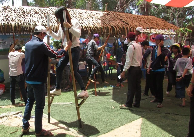 Không chỉ khách du lịch miền Đông, miền Tây mà có nhiều đoàn khách Hà Nội, khách nước ngoài cũng háo hức tham gia lễ hội. Ảnh: Thử sức với cà kheo