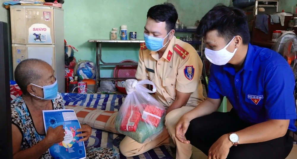 CSGT Rạch Chiếc và Chi đoàn phường Tân Phú, quận 9 tặng quà cho các hộ nghèo. Ảnh: CM