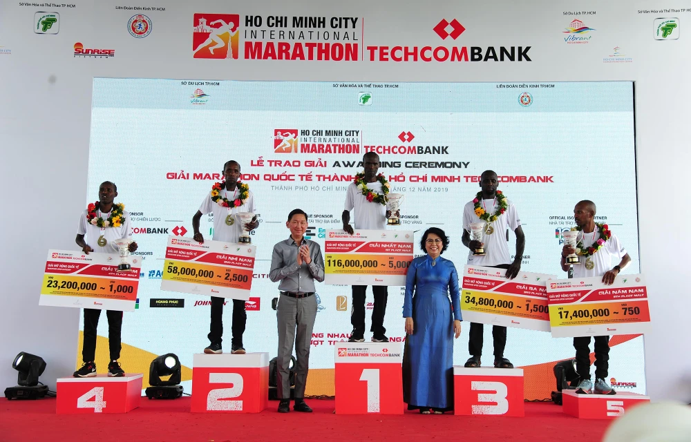 Lãnh đạo TP.HCM trao giải cho các vận động viên.