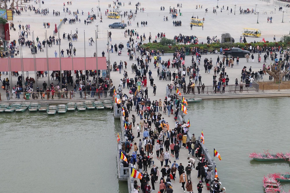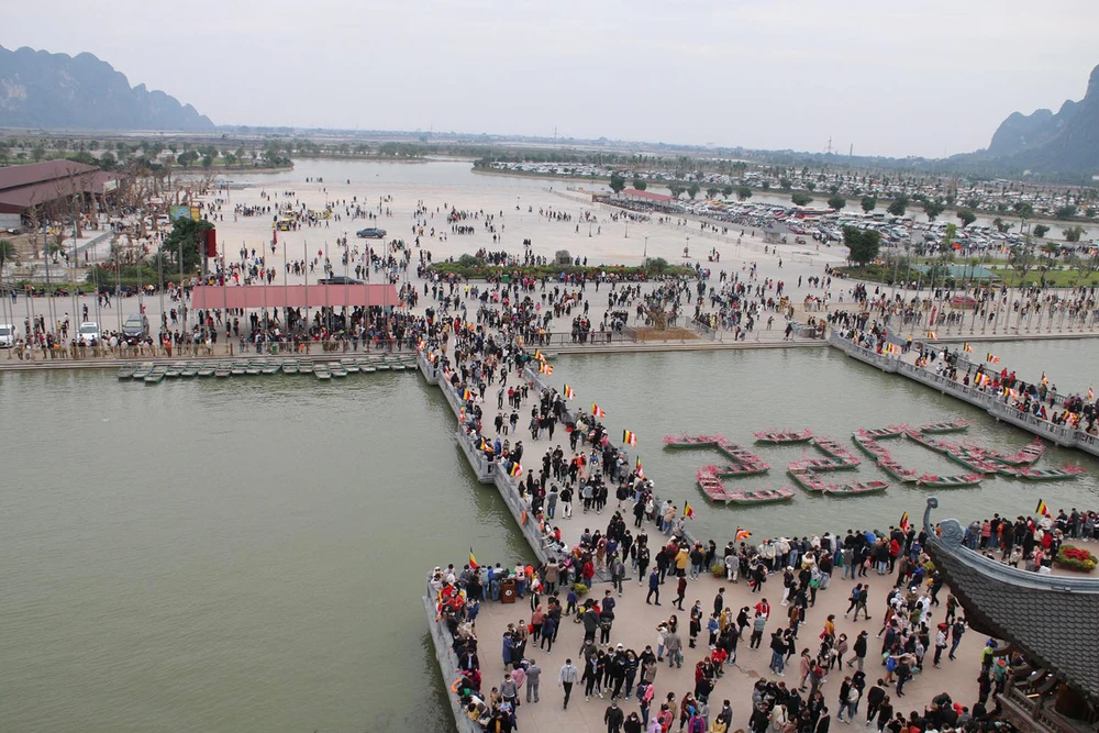 Ghi nhận vào trưa 4-2 (tức ngày mùng 4 Tết), hàng ngàn người dân đổ về khu du lịch chùa Tam Chúc (Hà Nam) để du xuân đầu năm mới.