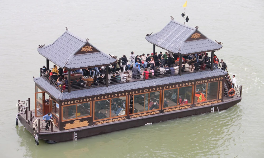 Do lượng người quá đông chờ đợi lên thuyền vào khu du lịch khiến nơi đây luôn xảy ra tình trạng ùn ứ, chen lấn.
