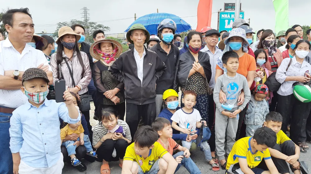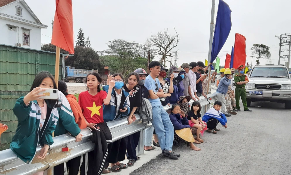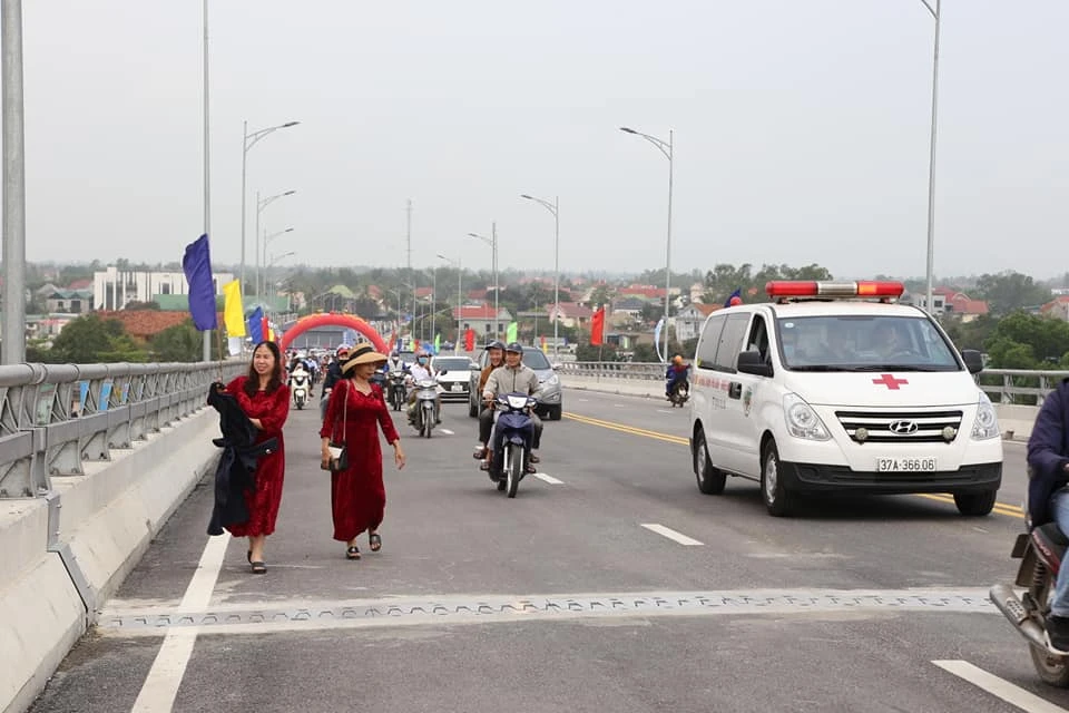 Rất đông người dân hai tỉnh Nghệ An, Hà Tĩnh đến xem lễ cắt băng thông xe cầu Cửa Hội.