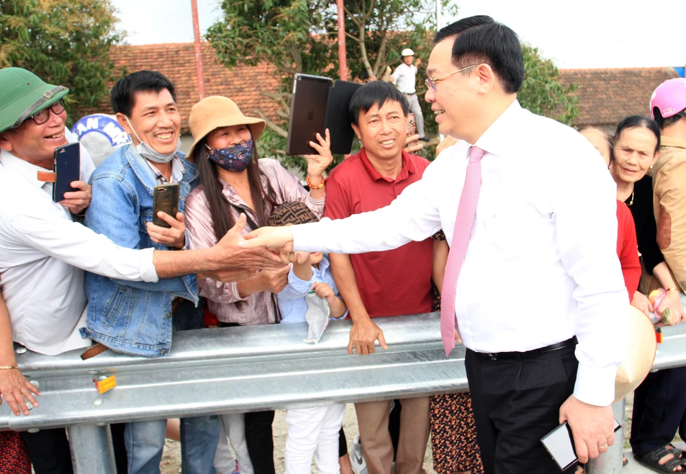 Ông Vương Đình Huệ, Bí Thư Thành ủy Hà Nội đến dự lễ và bắt tay người dân.