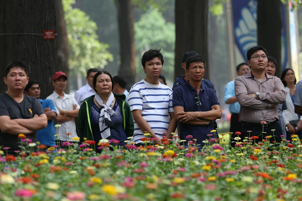 Từ 6 giờ 30, những đoàn khách đầu tiên đã tới chờ vào dự lễ. Đến 6 giờ 55, hàng ngàn người đã tập trung chỉnh tề ở sân trước Hội trường Thống Nhất.