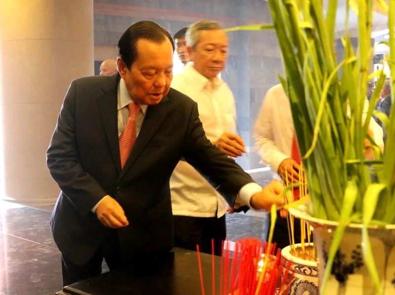 Nguyên Bí thư Thành ủy TP.HCM Lê Thanh Hải thắp hương tưởng nhớ các vua Hùng. Ảnh: TÁ LÂM