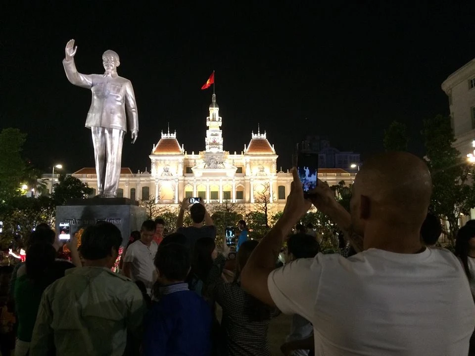 Ủy ban Nhân dân thành phố rực đèn hay tượng Bác Hồ là tâm điểm của những vị khách này.