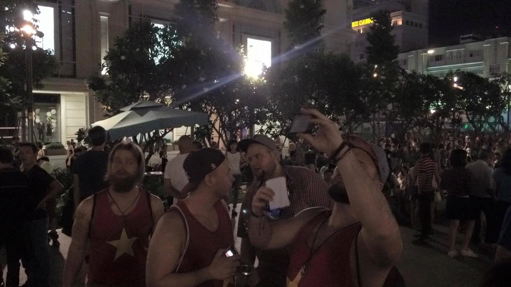 Hàng trăm người dân đã tập trung xung quanh một nhóm bạn trẻ đang nhảy theo một điệu nhạc sôi động ở phố đi bộ Nguyễn Huệ