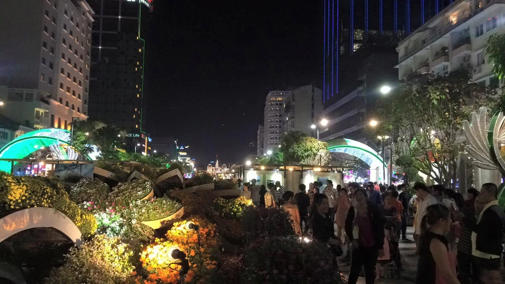 Mọi người tranh thủ vừa ngắm hoa vừa đợi đến thời khắc năm mới