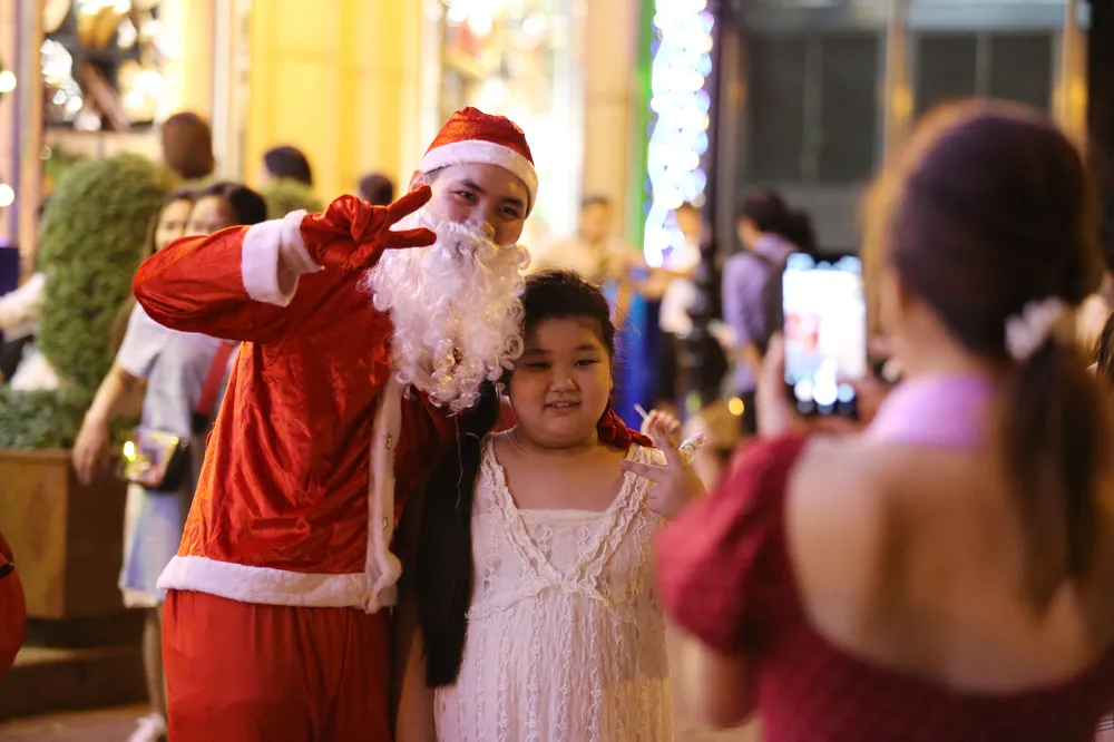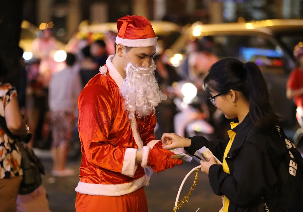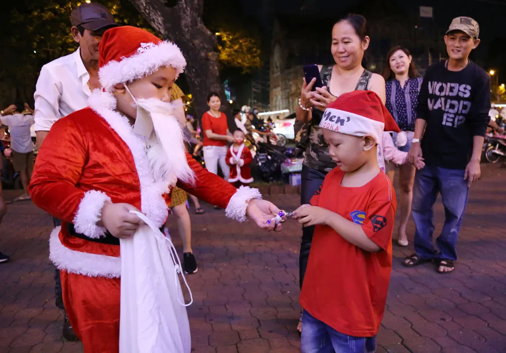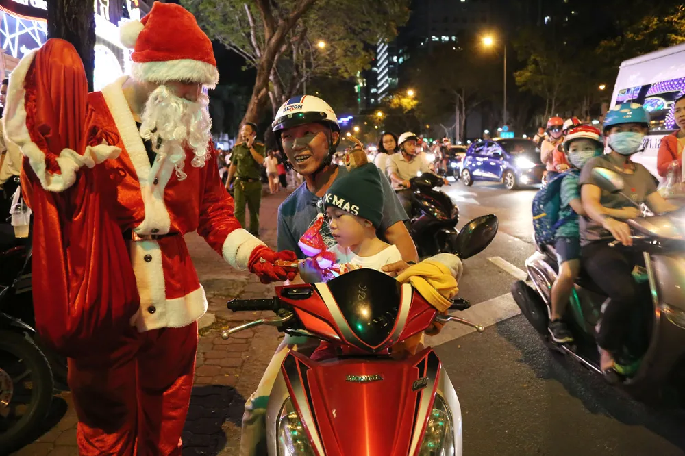 Ông già Noel tặng quà cho các em nhỏ trên đường Lê Duẩn (quận 1, TP.HCM).