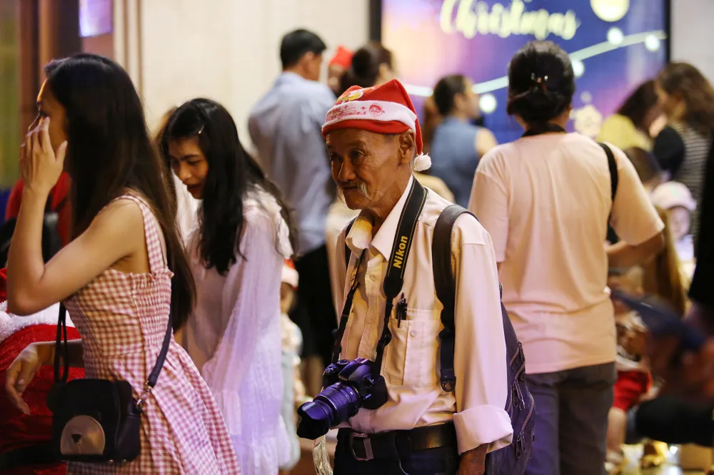 Một nhiếp ảnh gia lớn tuổi tranh thủ kiếm thêm thu nhập trong ngày lễ.