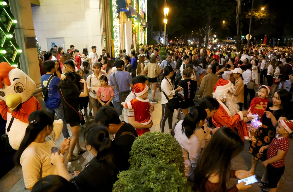 Từ 18 giờ, tại các trung tâm thương mại như Diamond, Takashimaya (quận 1, TP.HCM) đã rất đông người dân đổ về đây vui chơi Noel.