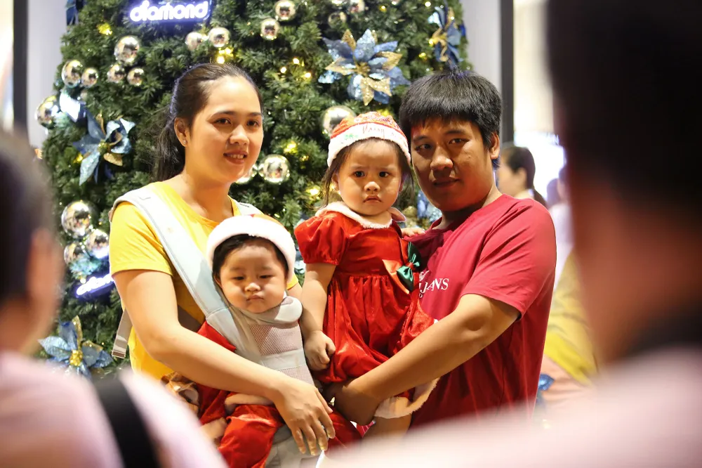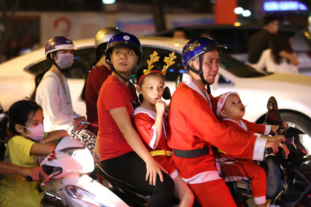 Cả gia đình diện đồ xuống phố chơi Noel.