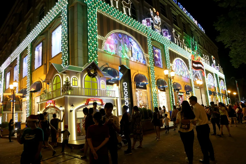Trung tâm thương mại Diamond được trang trí đèn và các tiểu cảnh Noel đẹp mắt.