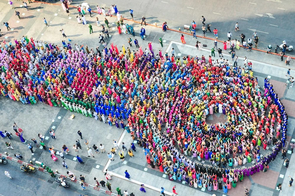 Gần 3.000 người tham gia đồng diễn áo dài trên phố đi bộ Nguyễn Huệ.