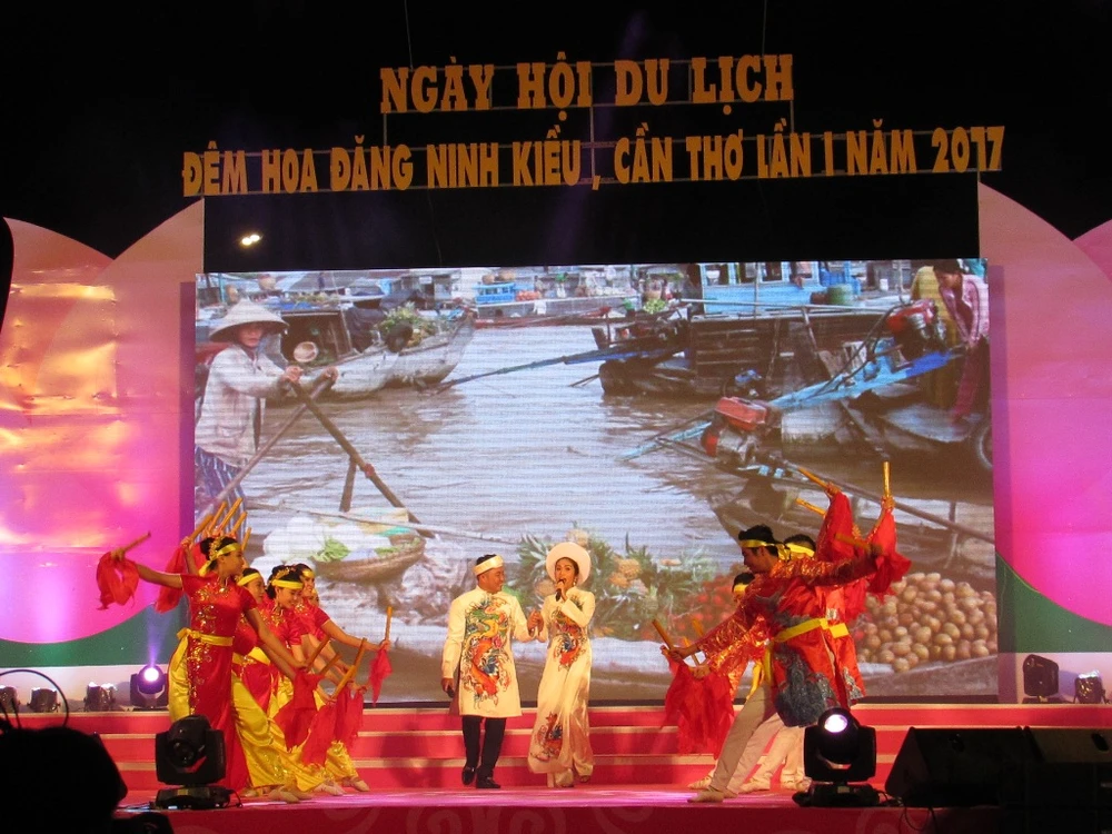 Tiết mục ca-múa mở màn khai mạc "Ngày hội du lịch - Đêm hoa đăng Ninh Kiều, Cần Thơ" lần thứ nhất năm 2017.