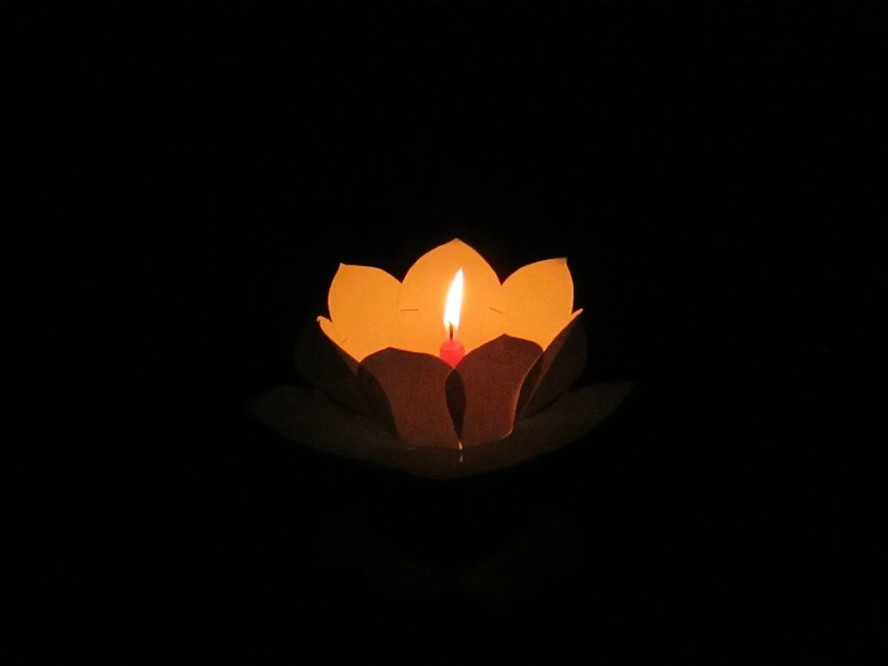 Một chiếc đèn hoa nhỏ của người dân được thả xuống sông ... Ảnh: NN