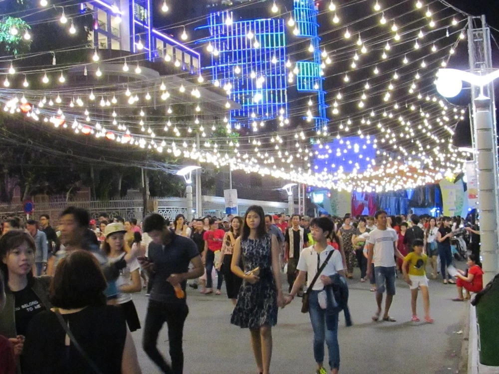 Đường Hai Bà Trưng (song song với Bến Ninh Kiều) tối nay cấm xe máy đi vào một đoạn dài khoảng 500m. Tất cả các bãi gửi xe đều kẹt cứng. Người đi xem hội hoa đăng đông hơn đêm giao thừa.