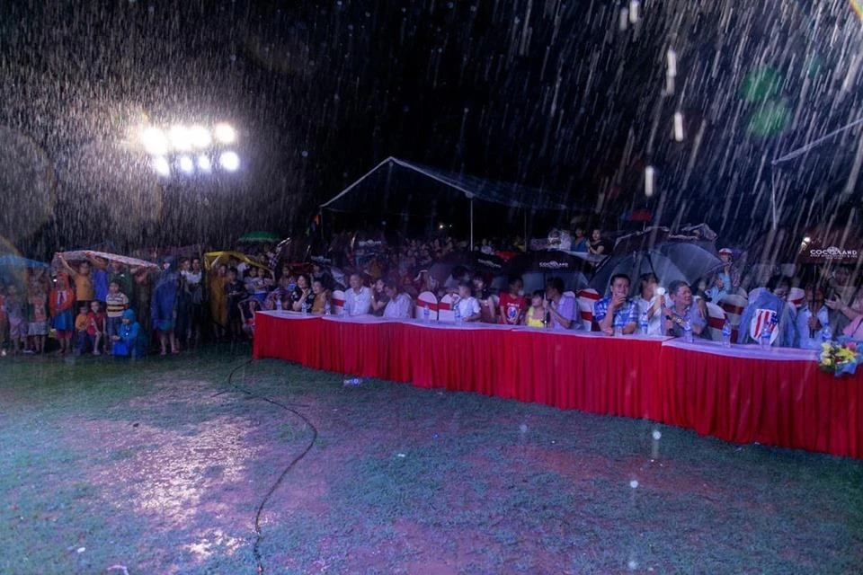 Tối hôm qua (29-8), tại sân vận động Thu Xà, Tư Nghĩa, Quảng Ngãi đã diễn ra đêm nhạc Trái tim nhân ái - Mùa tựu trường với sự tham gia của nhiều nghệ sĩ. Chương trình vừa mở màn thì trời đổ mưa nhưng cả ngàn khán giả vẫn mặc áo mưa trụ lại xem đến hết chương trình.