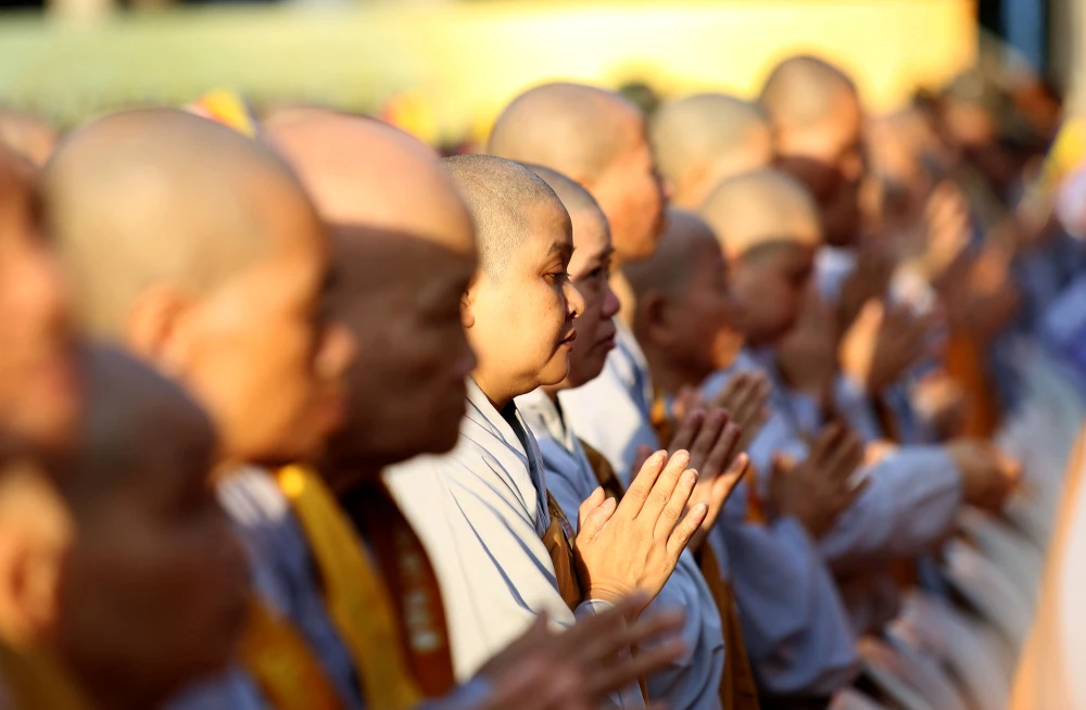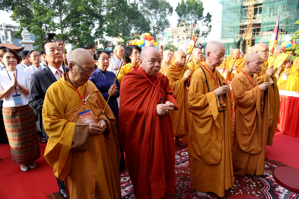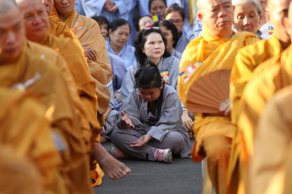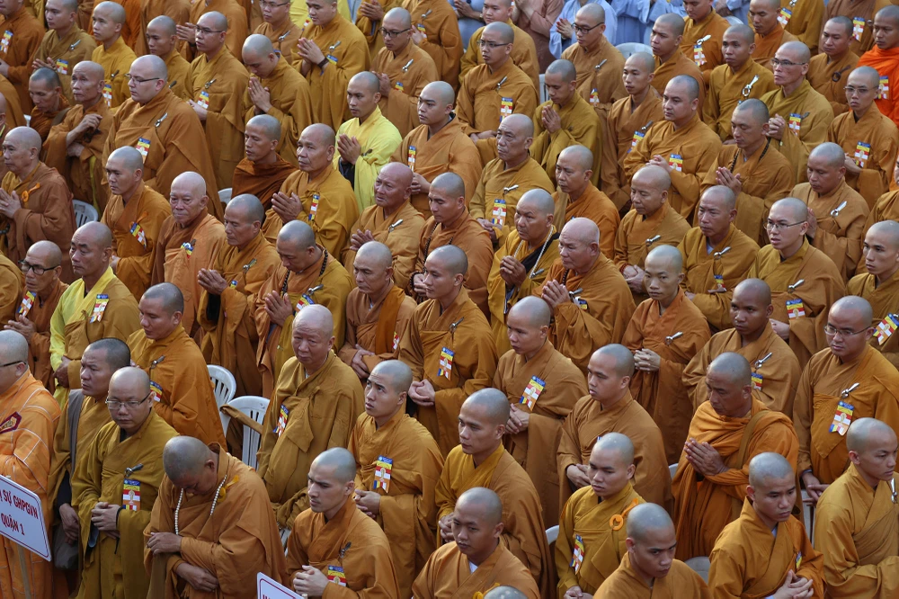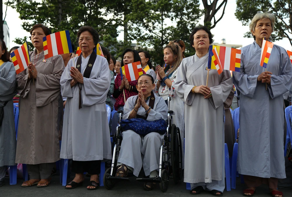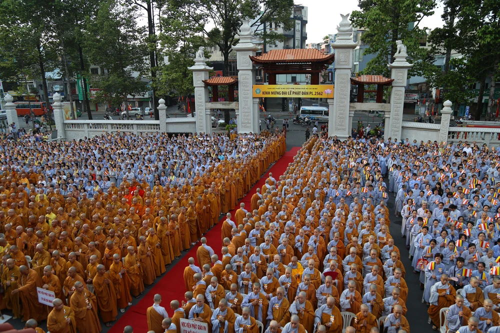 Hàng ngàn tăng ni, phật tử 24 quận, huyện của TP.HCM tập trung về Việt Nam Quốc Tự tham dự đại lễ.