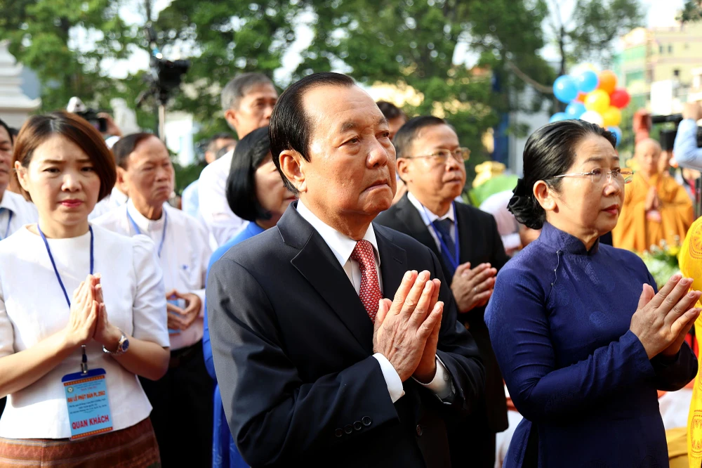 Dịp này, ông Lê Thanh Hải - nguyên Bí thư Thành ủy TP.HCM, bà Võ Thị Dung - Phó Bí thư Thành ủy TP.HCM và lãnh đạo sở, ban ngành cùng tăng ni, phật tử đã làm lễ dâng hương, thả bóng bay và chim bồ câu cầu cho một năm mưa thuận gió hòa, ấm no, hạnh phúc.