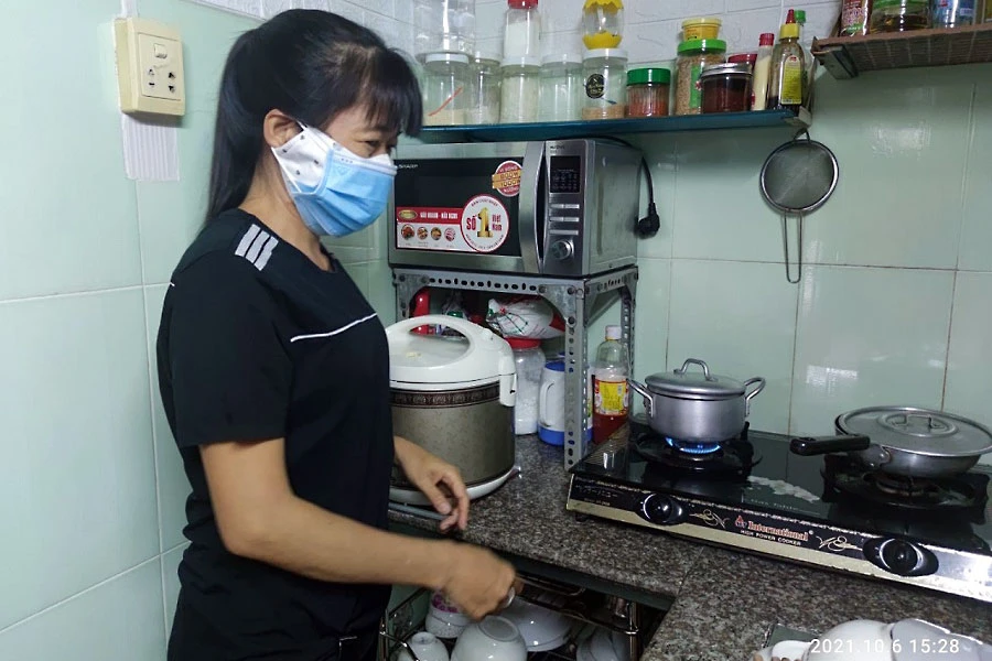 Chị Hoàng Thị Bé Anh (phường 12, quận Gò Vấp) cho hay chị làm nghề may gia công tại nhà. Lúc chưa có dịch, thu nhập của chị khoảng 200.000 đồng/ngày, đủ để trang trải sinh hoạt hằng ngày cho chị và đứa con đang học cấp II. Chồng chị làm nghề tự do. Từ tháng 5 đến nay, cả hai vợ chồng chị mất việc, phải sống nhờ tiền để dành và tiền hỗ trợ đợt 2 từ chính sách hỗ trợ của TP.