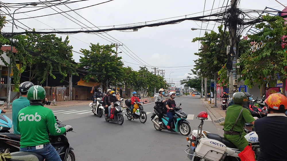 Tại chốt kiểm soát trên quốc lộ 1 đoạn gần giao lộ với đường Phan Văn Hớn (phường Tân Thới Nhất, quận 12), hàng trăm người dân đi xe máy về các tỉnh ở miền Trung, Tây Nguyên… cũng bị chặn lại.