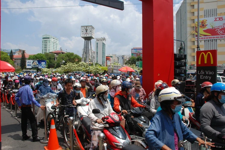 Dòng người đổ về đây xếp hàng vẫn không có dấu hiệu giảm xuống - Ảnh: Hồng Phúc