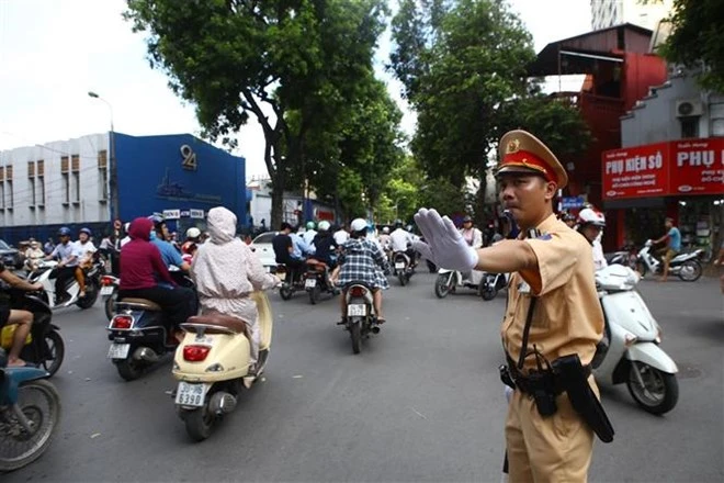 Các chiến sĩ cảnh sát giao thông làm nhiệm vụ.