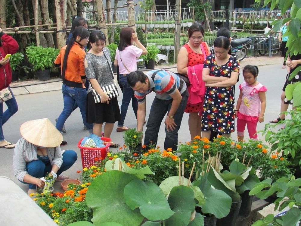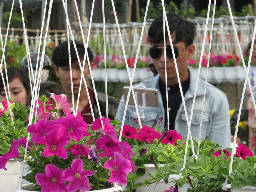 Khách ngắm hoa không quên lựa cho mình những chậu bông đẹp nhất để mang về đón tết. Ảnh: N.NAM