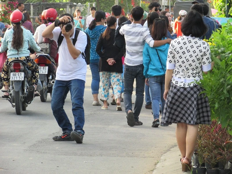 Nắng chiều sắp tắt nhưng nhiều người vẫn về đường hoa tìm cho mình khoảnh khắc đẹp nhất. Ảnh: N.NAM