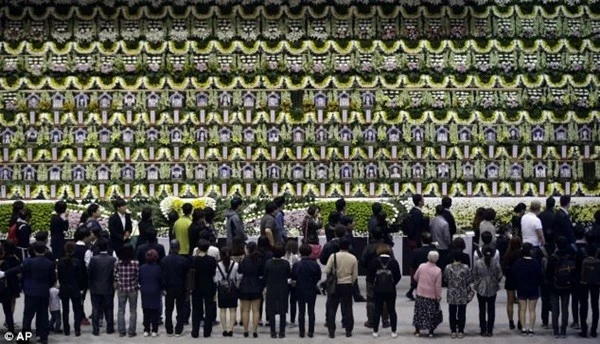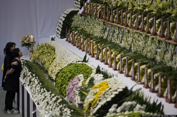 Sau khi số người thiệt mạng ngày càng tăng mạnh, 1 bàn thờ chung đã được dựng lên tại phòng tập thể thao của một sân vận động ở Ansan, thành phố chỉ cách thủ đô Seoul một giờ lái xe. Đây cũng là nơi trường cấp ba Danwon với hơn 300 học sinh và giáo viên có mặt trên chuyến phà xấu số tọa lạc. Giữa một rừng hoa trắng tang thương, gương mặt ngây thơ của những thiếu niên hiện ra trong những bức ảnh khiến ai cũng vô cùng thương xót. Các em là những nạn nhân thiệt mạng dưới đáy biển cả khi phà Sewol bị chìm vào ngày 16/4.