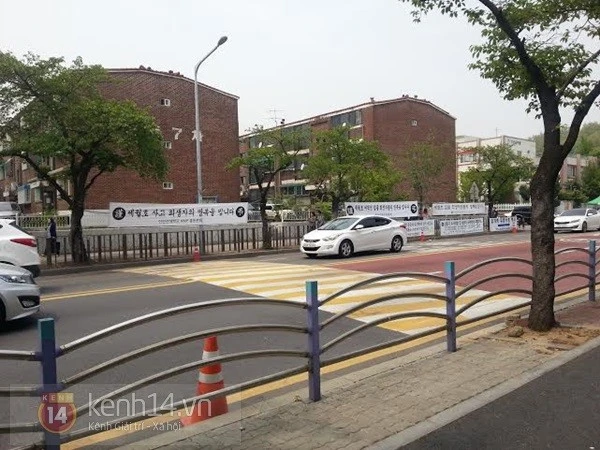 Trên các tuyến đường của thành phố, rất nhiều tấm biển với nội dung "Cầu phúc cho những nạn nhân của phà Sewol" được treo. Ảnh: H.Vũ - Du học sinh trường Đại học Kyung Hee.