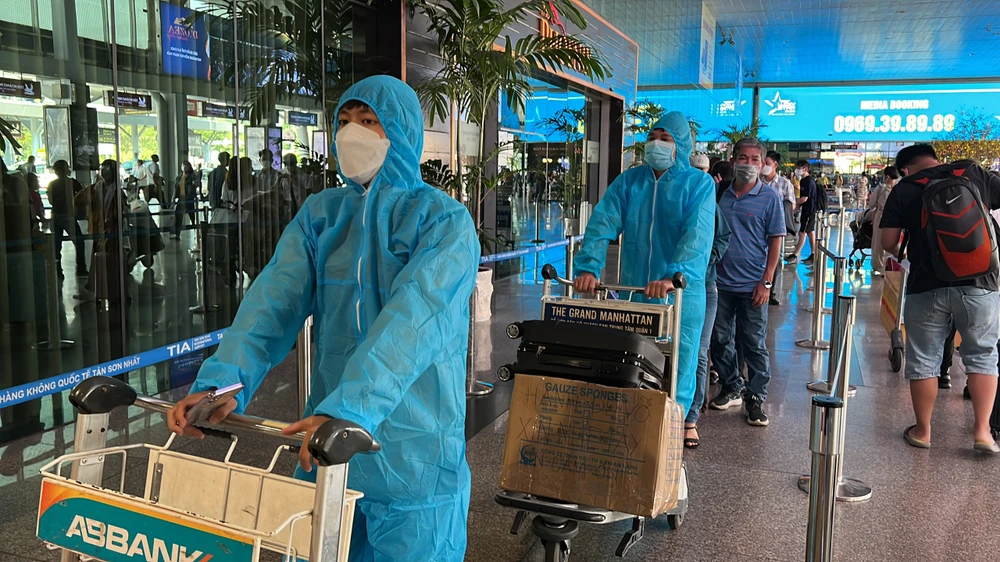Tuy nhiên, trên thực tế nhiều người chưa chủ động khai báo y tế khiến khâu làm thủ tục kéo dài. Có những lúc, một gia đình mất hơn 30 phút để làm thủ tục, gửi hành lý.