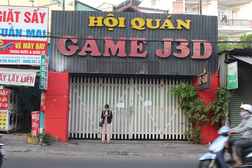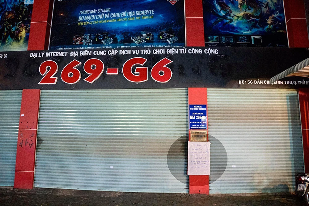 Cơ sở game online lớn nhất Thủ Đức: 269-G6 (đường Dân Chủ) dán thông báo tạm ngưng hoạt động. Ảnh: Nguyễn Thi