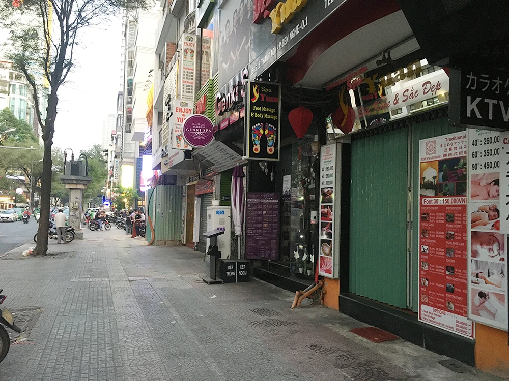 Trên đường Lê Thánh Tôn, nhiều nhà hàng Nhật Bản tại khu vực này cũng đóng cửa. Một số mở cửa nhưng rất vắng khách. Hầu hết cả khu phố Nhật đều trong tình trạng ít khách qua lại và ế ẩm.