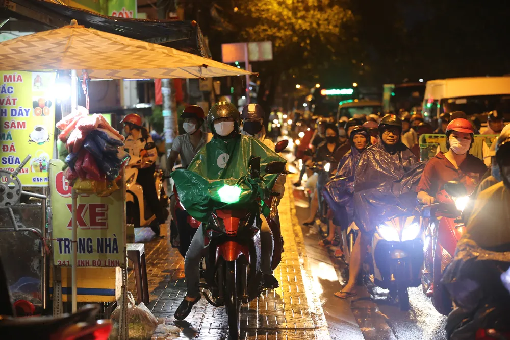 Đến 19 giờ 30, tình trạng giao thông ở các tuyến đường quanh bến xe miền đông đã được cải thiện. Tuy nhiên, một cơn mưa lớn khác đã bắt đầu xuất hiện trở lại.