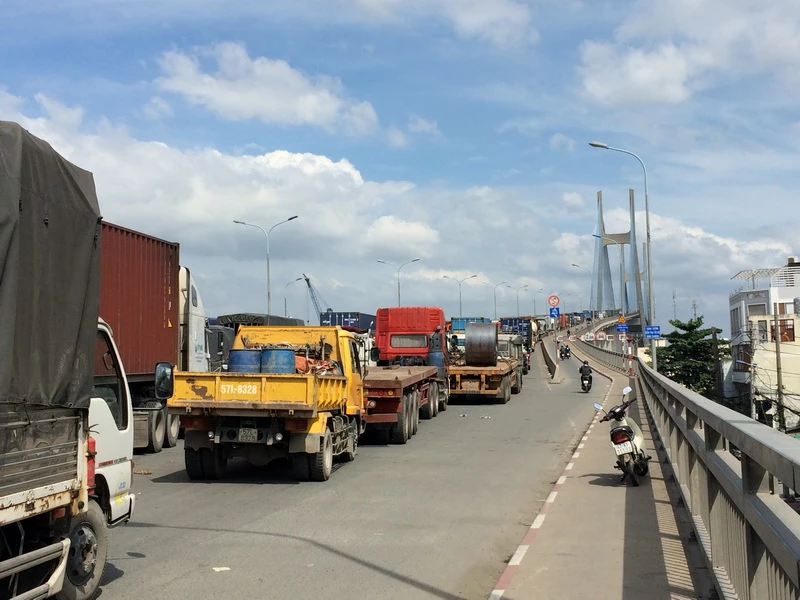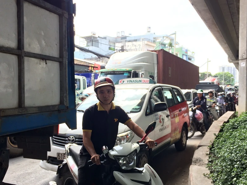 Anh Dũng ngán ngẩm cho biết: “Tôi chở hàng cho công ty, từ 8 giờ sáng dưới chân cầu đến hơn 12 giờ 30 trưa mới lên giữa cầu, trời nắng lại còn kẹt xe nữa chứ. Ngày thường đã kẹt, đến cuối năm nhiều xe bốc hàng cho dịp Tết nên càng kẹt hơn”.