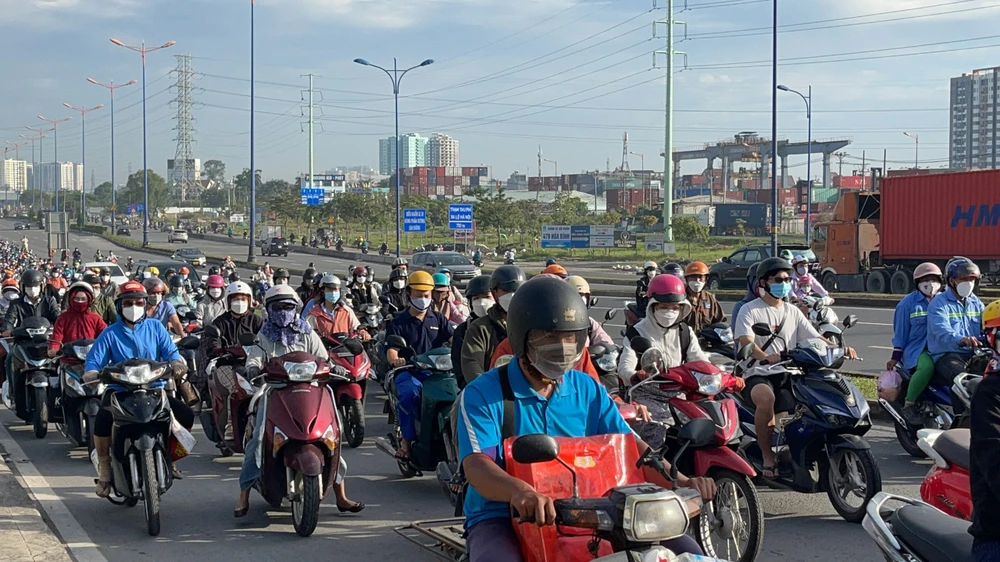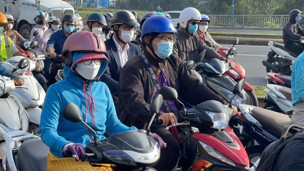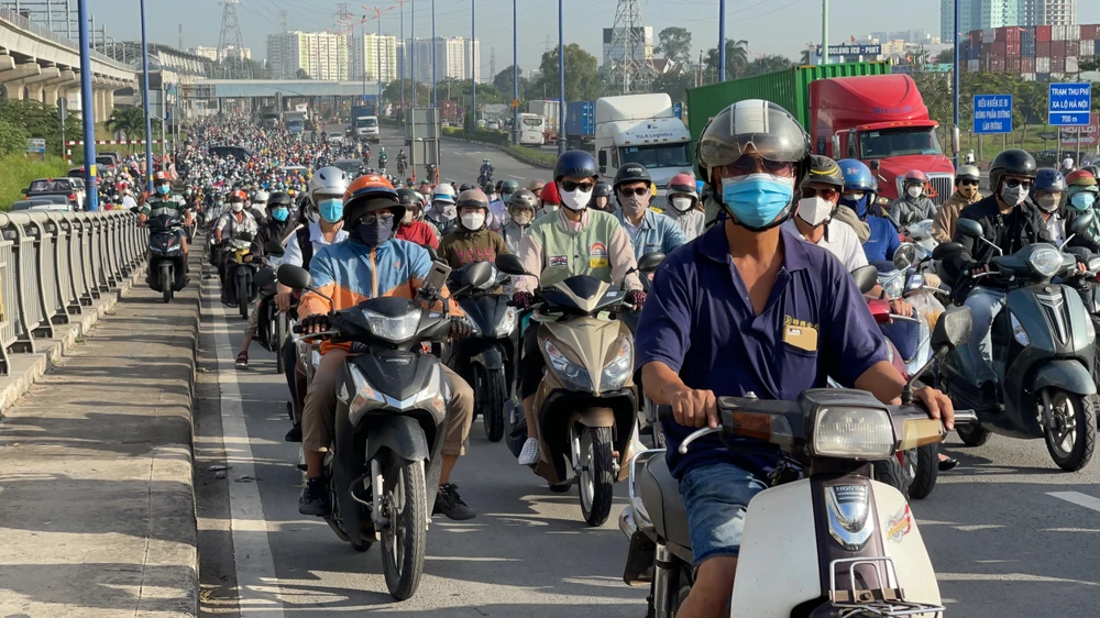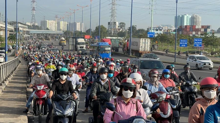 Hàng ngàn xe máy nối đuôi nhau. Ảnh: ĐT.
