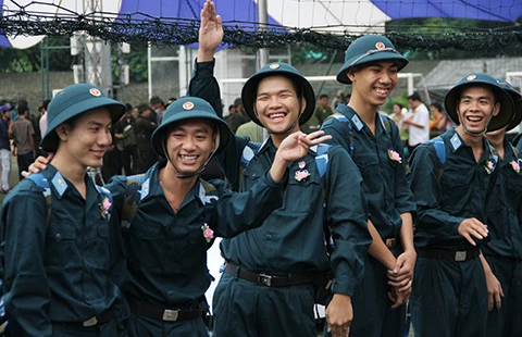 Các tân binh TP.HCM háo hức lên đường nhập ngũ, tham gia bảo vệ Tổ quốc. Ảnh: N.HOÀNG