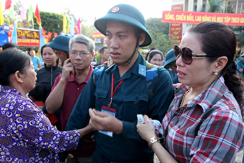 Những giọt nước mắt đã rơi trong ngày tiễn con lên đường vào quân ngũ. Ảnh: HOÀNG GIANG