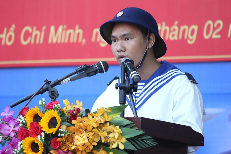 Bạn Trần Tuấn Anh (23 tuổi, ngụ phường Tân Chánh Hiệp, quận 12) lên đường phục vụ trong Lữ đoàn 146 Vùng 4 Hải quân cho biết được bảo vệ Tổ quốc là niềm tự hào của lớp trẻ. “Thế là ước mơ vào Hải quân của tụi em đã thành hiện thực. Tụi em sẵn sàng đến những nơi khó khăn nhất để bảo vệ toàn vẹn chủ quyền lãnh thổ, biển đảo của quê hương”, Tuấn Anh nói.