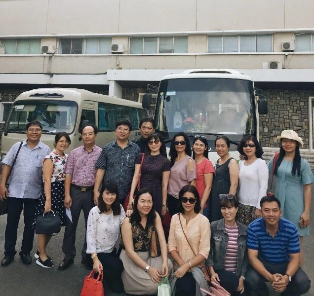 Cán bộ, giảng viên Trường ĐH Nông lâm TP.HCM trước giờ khởi hành về Long An coi thi. Ảnh: Đ.LÝ