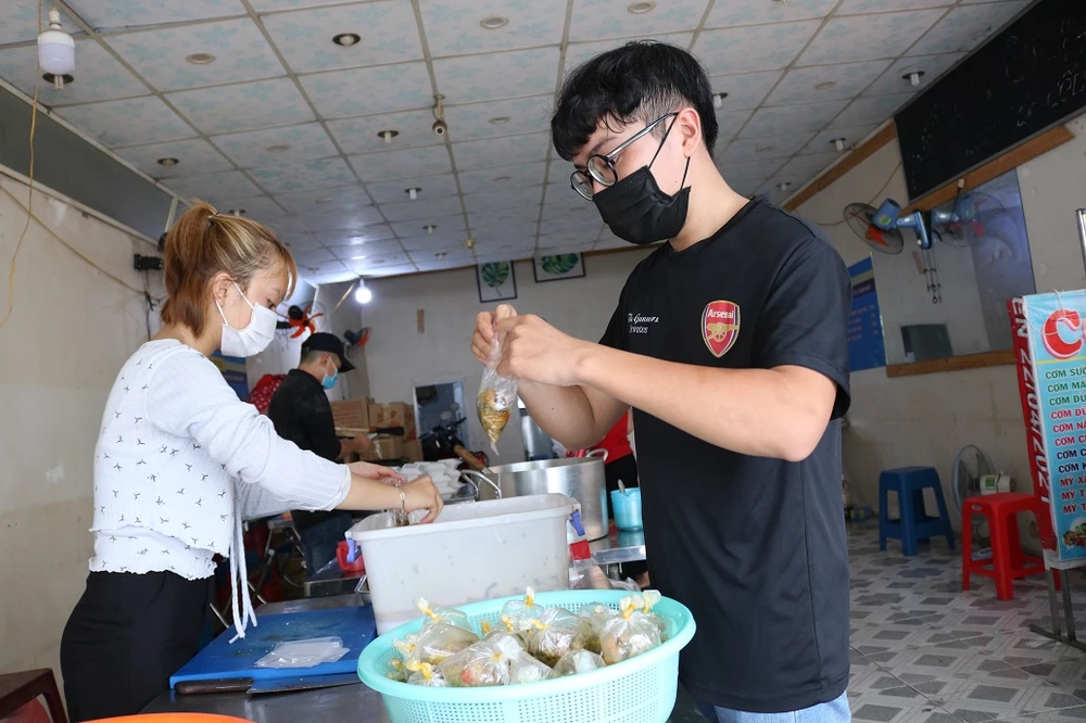 Nhận thấy quê mình đang dịch bệnh nguy hiểm nên bạn Lê Kim Nghĩa - Sinh viên năm hai Trường ĐH Kinh tế - Luật TP.HCM quyết định ở lại thành phố để đảm bảo an toàn cho bản thân, gia đình và mọi người. Tranh thủ thời gian rảnh vì nghỉ dịch, Nghĩa hỗ trợ anh Hào làm những suất cơm miễn phí.