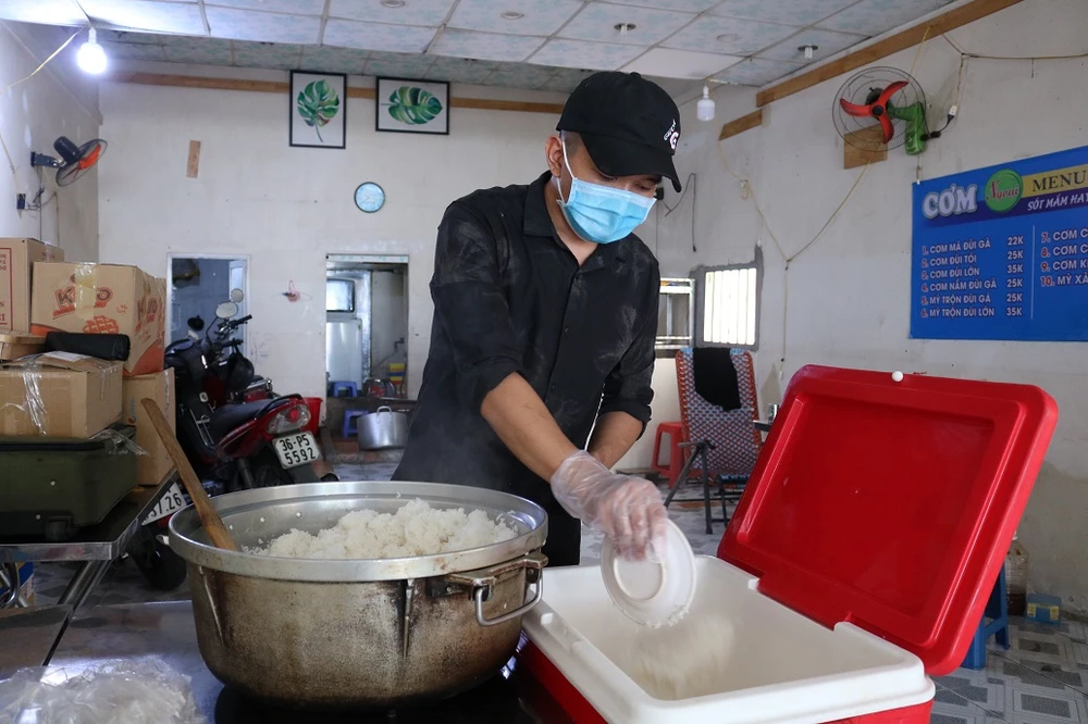 Những suất cơm ấm nóng được trao đến các bạn sinh viên, người lao động và cả dân quân, cán bộ đang hỗ trợ cách ly tại ký túc xá. Mỗi buổi, anh sẽ làm từ 70 suất đến 100 suất cơm.
