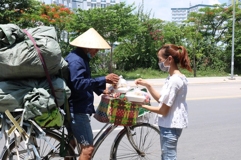 Các suất cơm miễn phí được trao tận tay người lao động khó khăn - Ảnh: ÁNH TRINH