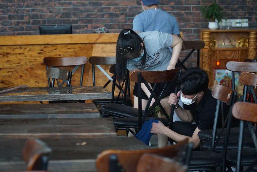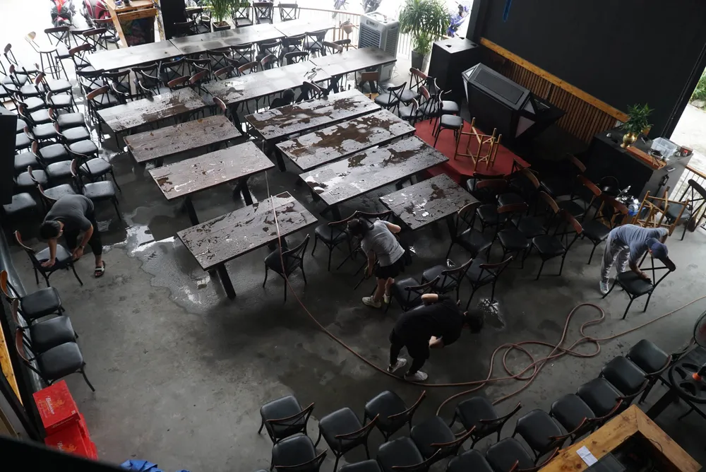 Trước đó, nhiều quán nhậu trên đường Trần Văn Trứ đã huy động nhân viên lau dọn bàn ghế, chuẩn bị phục vụ khách ăn uống tại chỗ. Ảnh: BT