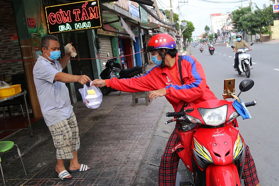 | Mong phí ship giảm để người mua thấy hợp lý - “Tôi cả tháng nay thèm tô bún bò nhưng không thể mua được, mà có mua cũng không quán nào bán. Nghe các quán được mở bán online trở lại tôi mở app ra đặt ngay. Thế nhưng tiền ship đắt quá và đặt cả giờ đồng hồ mới có tài xế nhận đơn. Tô bún bò giá tôi đặt là 45.000 đồng mà tiền ship 27.000 đồng trong khi khoảng cách từ nhà đến quán chưa đầy 2 km” - chị Phạm Thanh Nga (đường Phan Văn Trị, quận Gò Vấp, TP.HCM). - “Nhà tôi vừa mở lại cửa hàng bánh mì cách đây vài ngày nhưng chỉ bán mang về thông qua shipper thôi. Thế nhưng với mặt hàng như bánh mì mà bán qua shipper thì cũng có cái bất lợi. Bởi bình thường khách đến mua chỉ vài ổ bánh mì với số tiền rất nhỏ. Giờ nếu đặt qua app, phí khách phải trả có khi cao gấp mấy lần so với số tiền mua bánh mì. Người bán cũng mong phí ship giảm để người bán và người mua đều thấy hợp lý” - anh Nguyễn Văn Thuận (chủ cửa hàng bánh mì trên đường Hoàng Văn Thụ, quận Tân Bình). |