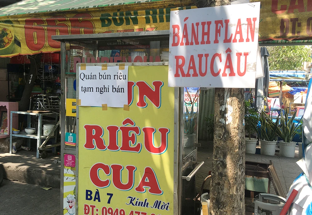 Một quán bún riêu trước chung cư treo biển thông báo tạm nghỉ bán. Ảnh: NY